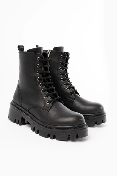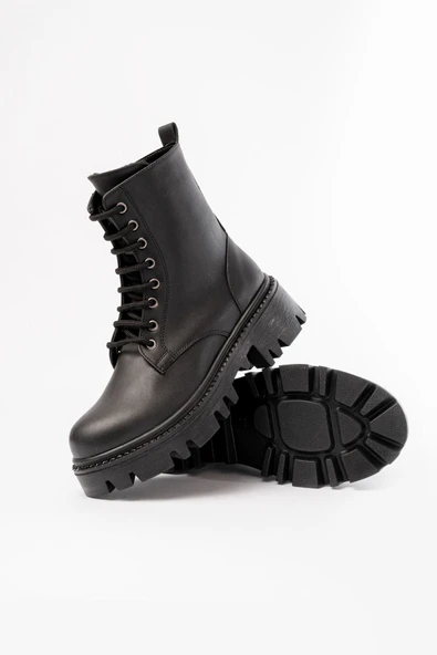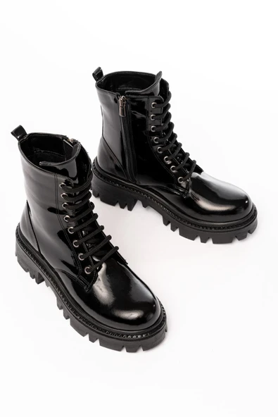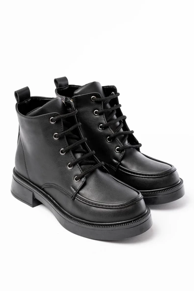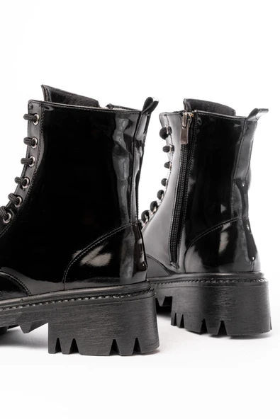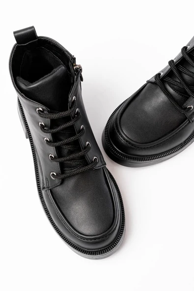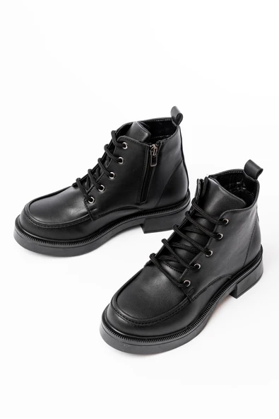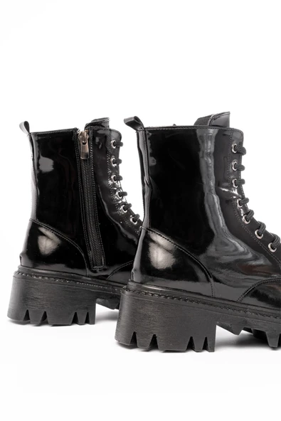 868-356 Siyah Rugan Bağcıklı Fermuarlı Günlük Kadın Bot