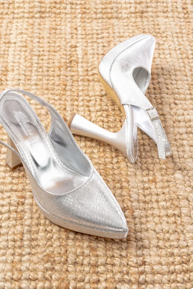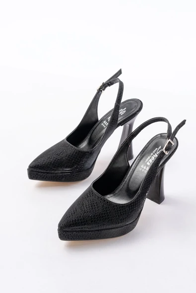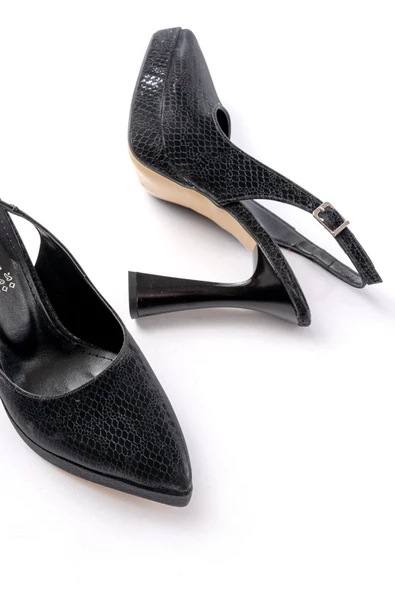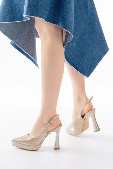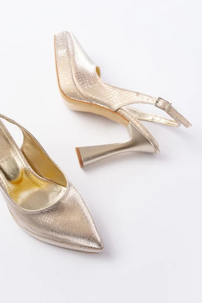 B-2101 Gold Günlük Arkası Açık Yılan Desenli Topuklu Ayakkabı