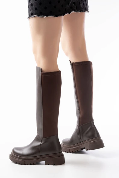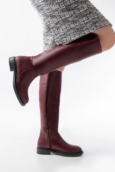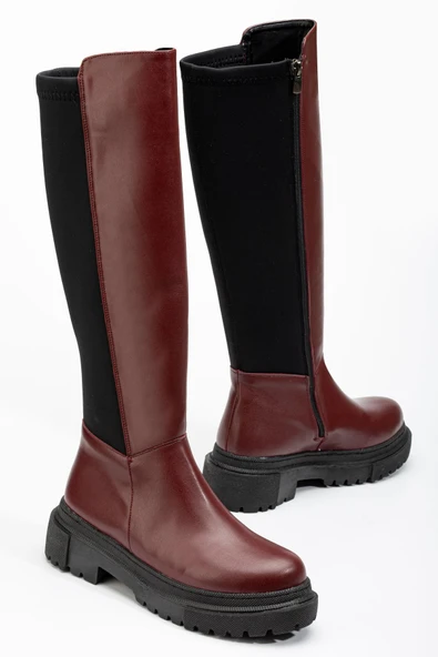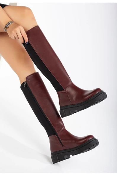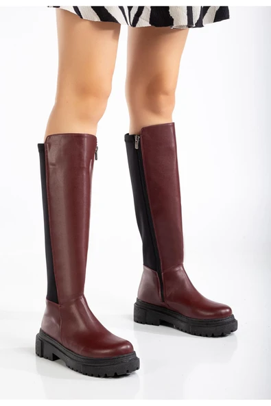 812-305 Bordo Arkası Streç Fermuarlı Günlük Kadın Çizme