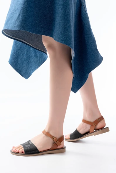 720 Bej Desenli Arkası Açık Günlük Kadın Sandalet