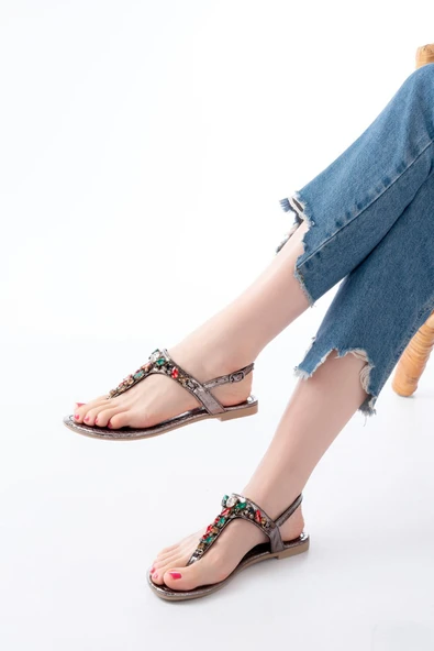 152-1110 Platin Multi Taşlı Parmak Arası Kadın Sandalet
