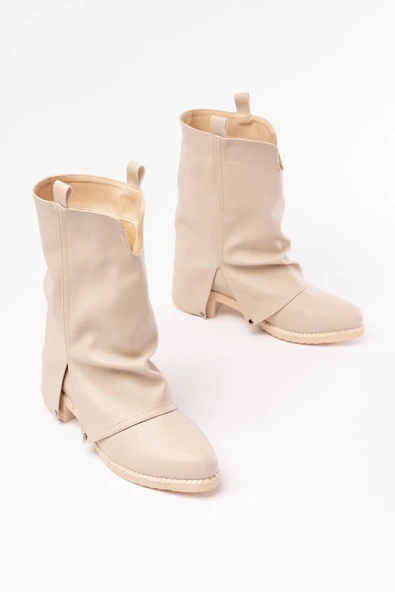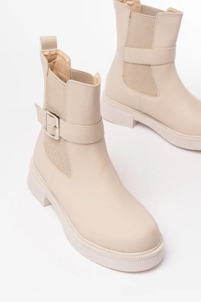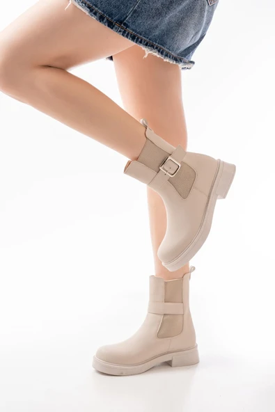 02-2004 Bej Toka Aksesuarlı Lastikli Günlük Kadın Bot