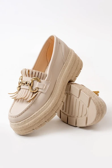 749-750 Bej Tokalı Günlük Yüksek Tabanlı Loafer Ayakkabı