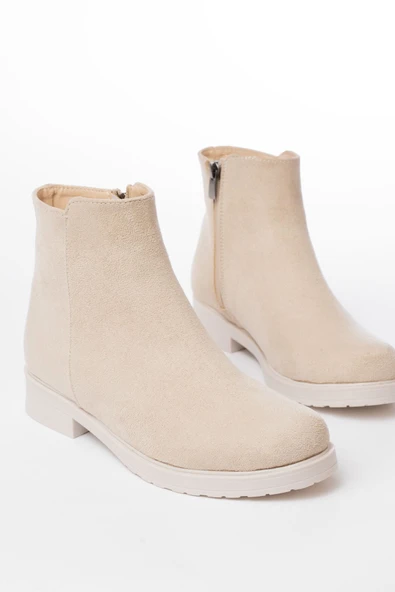 165-204 Bej Süet Fermuarlı Günlük Kadın Bot