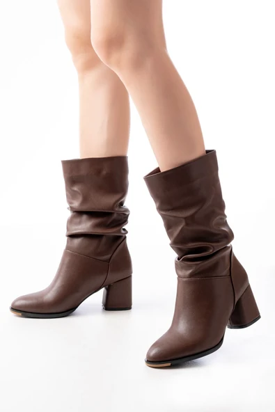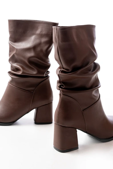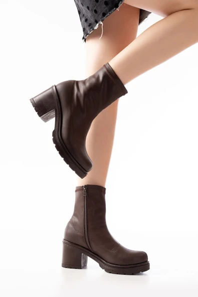 767-3012 Kahve Leopar Fermuarlı Kalın Topuklu Günlük Kadın Bot