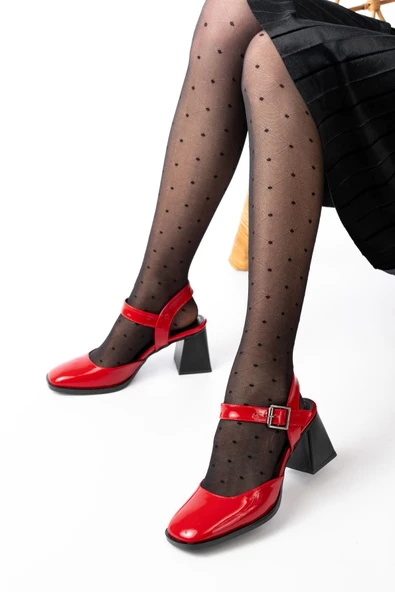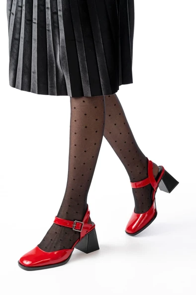 İnf-40450 Kırmızı Rugan Günlük Arkası Açık Topuklu Ayakkabı