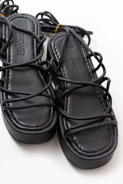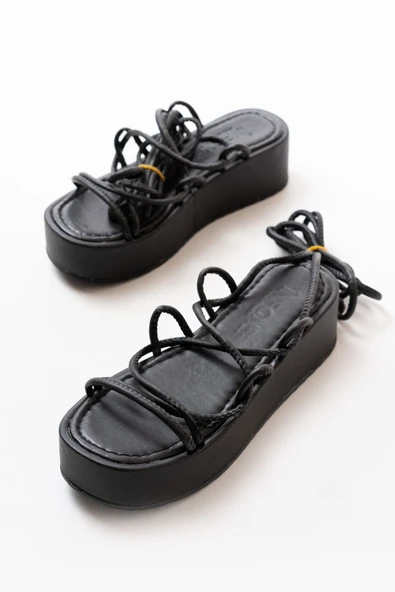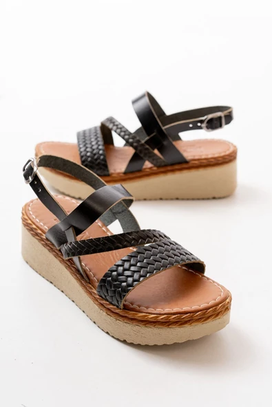 24414-1005 Siyah Günlük Çapraz Dolgu Topuk Kadın Sandalet