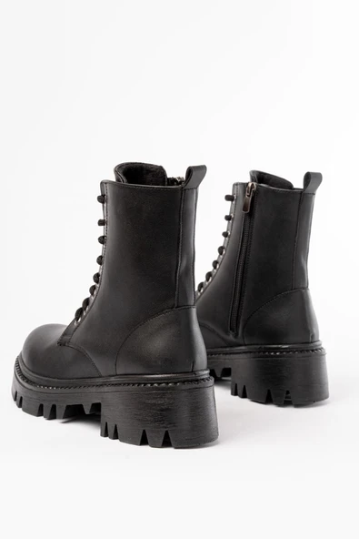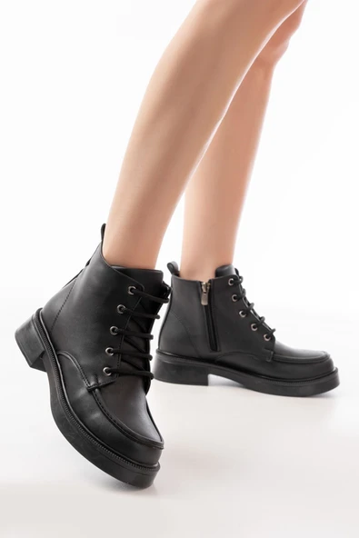 02-2001 Siyah Bağcıklı Fermuarlı Günlük Kadın Bot