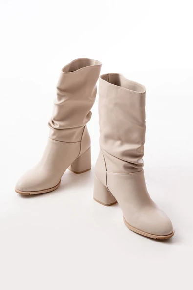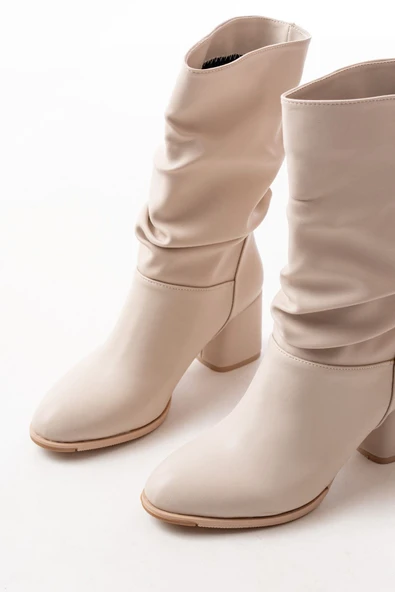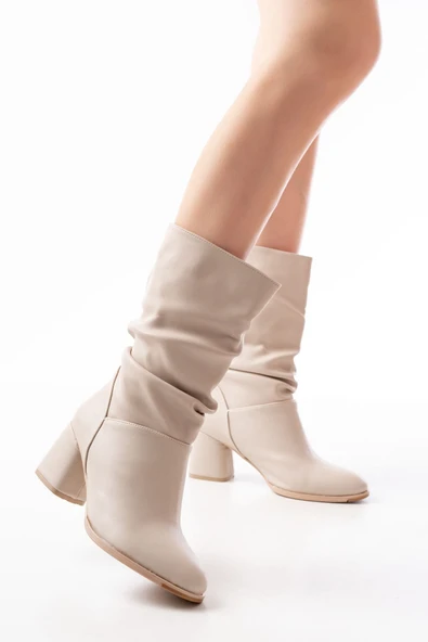 Syt-2003 Bej Süet Körüklü Ince Topuklu Günlük Çizme