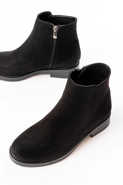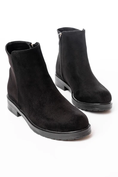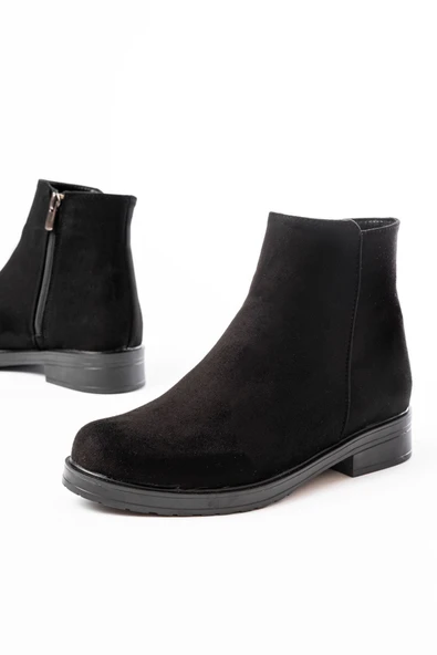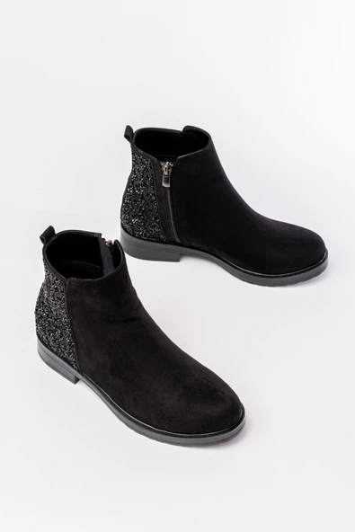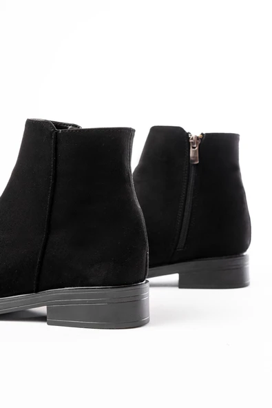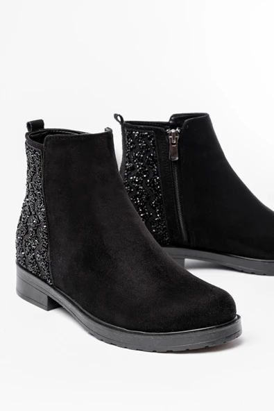 165-212 Siyah Süet Taş Aksesuarlı Fermuarlı Günlük Kadın Bot
