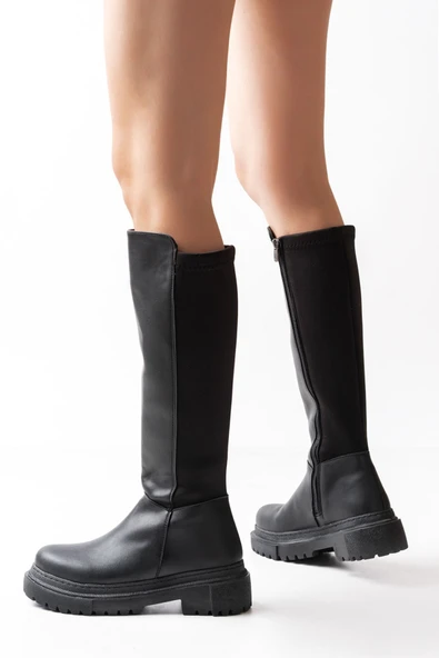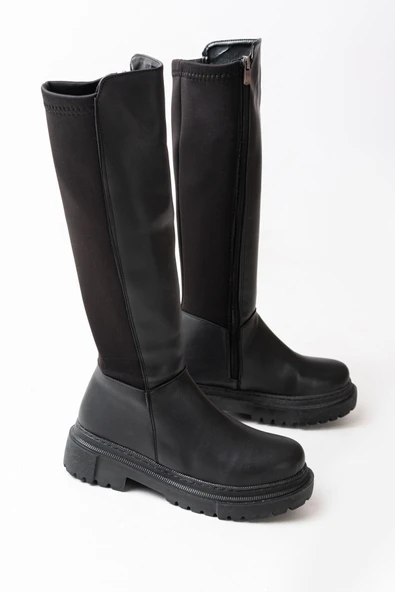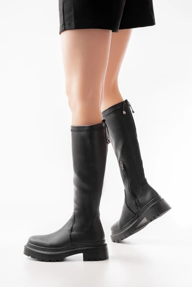 165-Streç Siyah Diz Üstü Fermuarlı Günlük Kadın Çizme