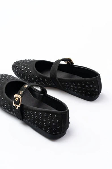 DM-6020 Siyah Troklu Baret Tokalı Günlük Kadın Babet