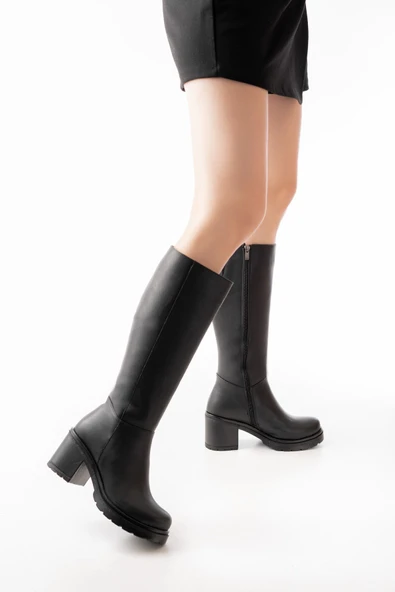 236-2291 Siyah Fermuarlı Günlük Kadın Çizme