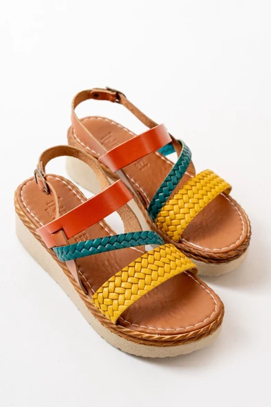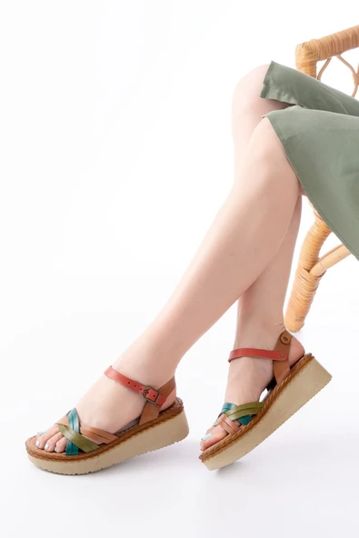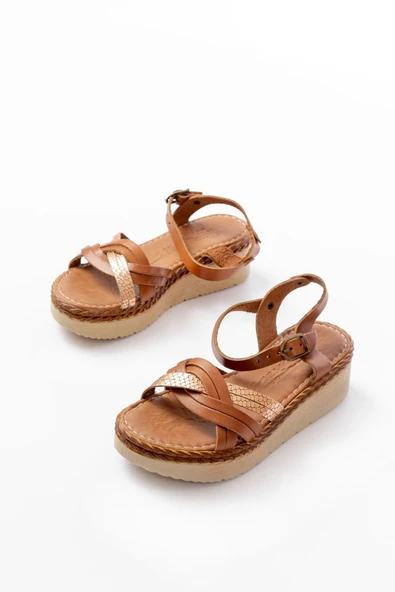 730-152 Taba Ortopedik Hakiki Deri Dolgu Kadın Sandalet