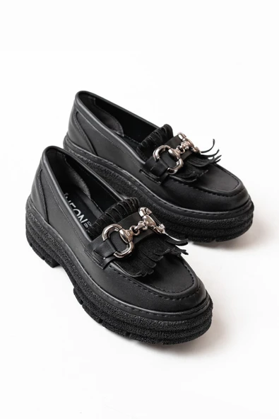 868-754 Siyah Kroko Bağcıklı Günlük Yüksek Tabanlı Loafer Ayakkabı