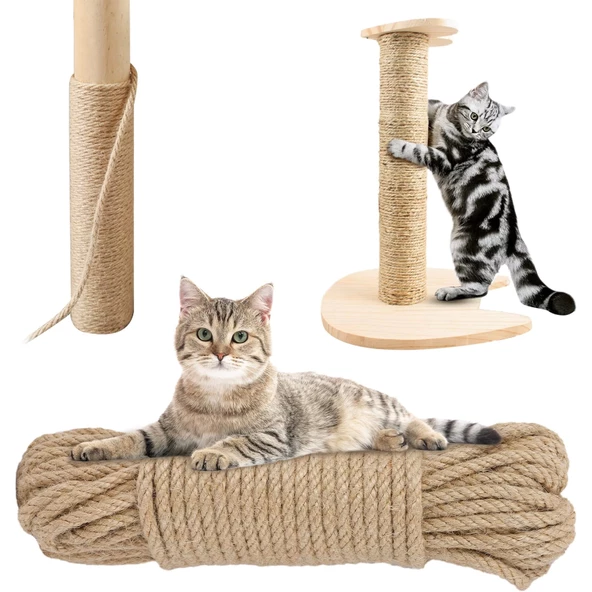 Jütburada Kedi Tırmalama İpi 6 mm 10 Metre Jüt Halat