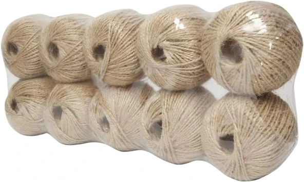 Jütburada Bej Jüt İplik 100 Metre 10 Adet Hasır İp Kırnap İp Doğal İp Çuval İp