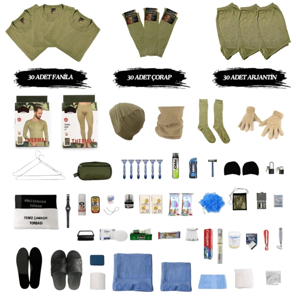 KARCAMP 30'lu Temel Askeri Malzeme ve İç Çamaşır Seti