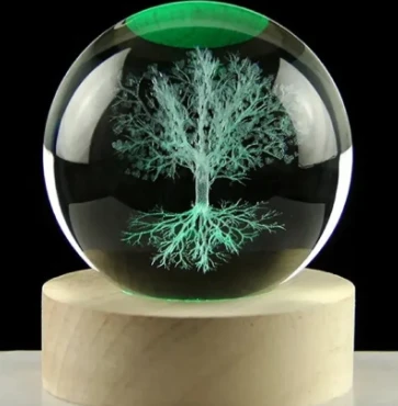 KENPAZAR Dekoratif AĞAÇ Tasarımlı Ahşap altlıklı Işıklı Cam Küre 6cm