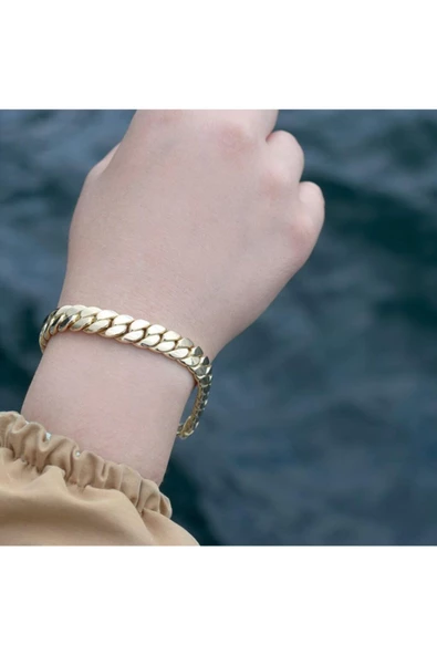 Yıldız Kilitli Kalın Altın Zincir Bileklik