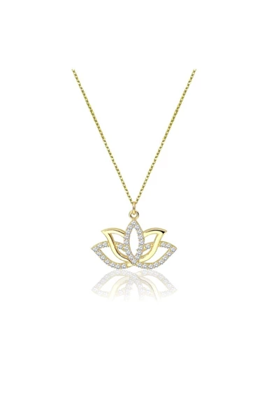 Lotus Çiçeği Taşlı Altın Kolye