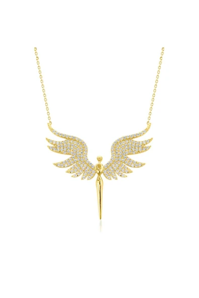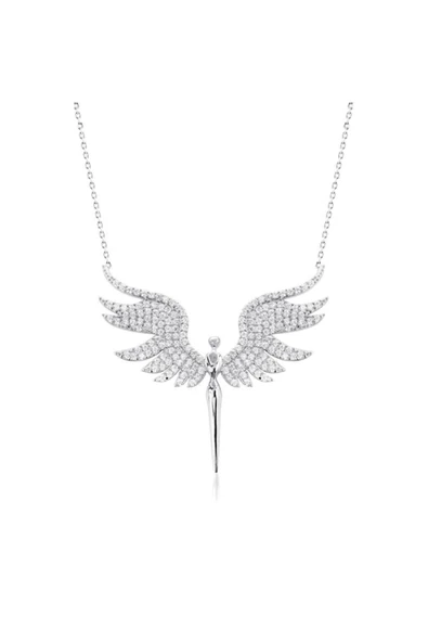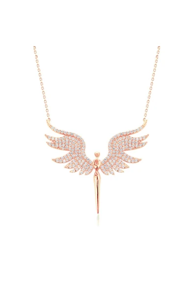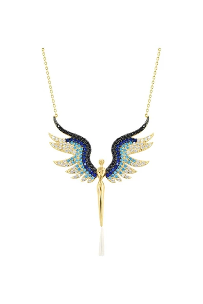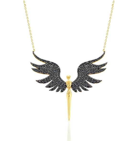 Melek Kanadı Kalpli Taşlı Altın Kolye