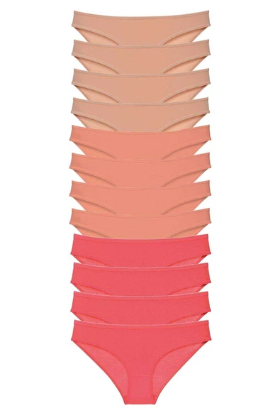 12 adet Süper Eko Set Likralı Kadın Slip Külot Ten Pudra Fuşya