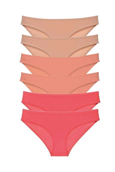 6 adet Süper Eko Set Likralı Kadın Slip Külot Ten Pudra Fuşya