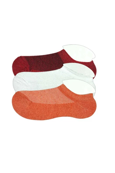 3 Adet Çocuk Sneaker Patik Çorap Bordo Beyaz Turuncu