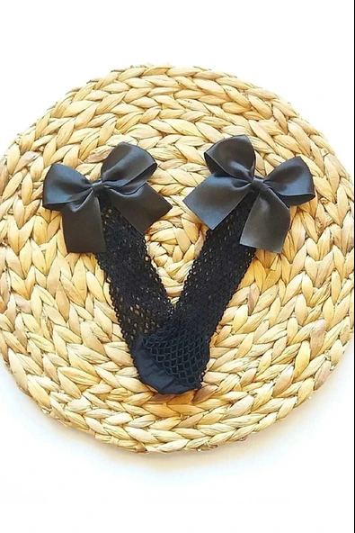 Siyah Fileli Diz Altı Fiyonklu Kız Çocuk Çorap