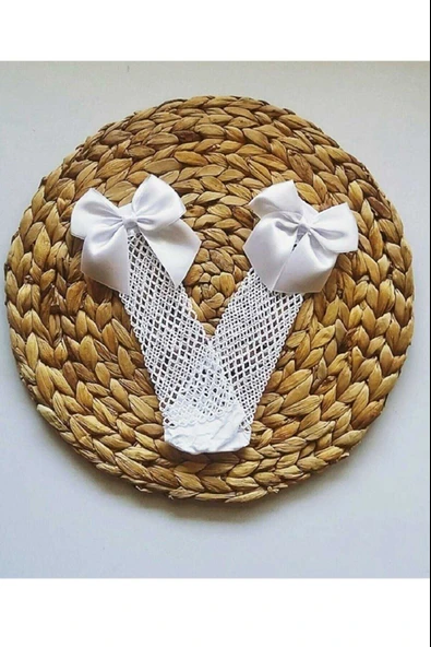 Beyaz Fileli Diz Altı Fiyonklu Kız Çocuk Çorap