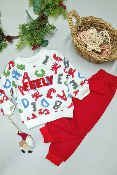 2 İp Mevsime Uygun Kırmızı Bebek Eşofman Takımı