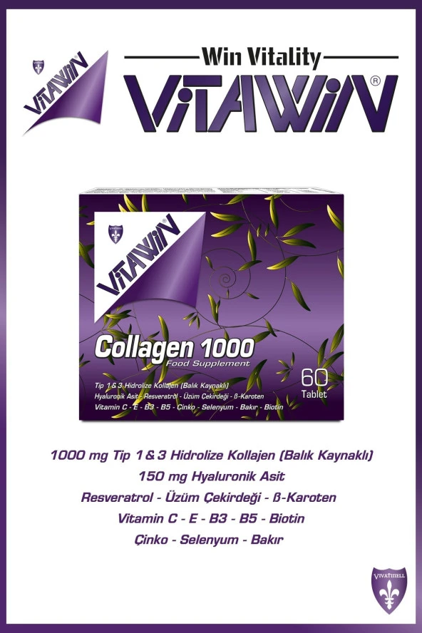 Vitawin Vitawin Collagen 1000 60 Tablet - Kollajen + Hyaluronik Asit + Beta Karoten+Resveratrol+Vitamin+Mineral