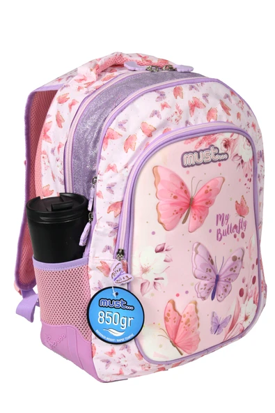 MUST 584980 Butterfly Çift Cepli İlkokul Sırt Çantası-Pembe