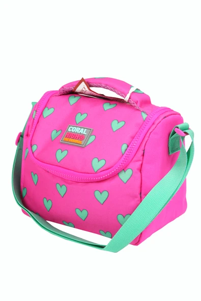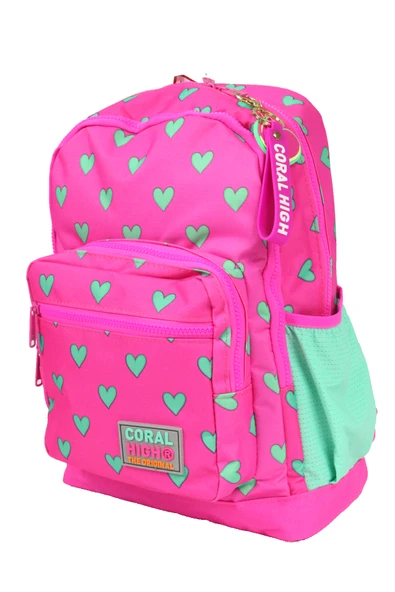 CH 23113 Pembe Yeşil Kalpli - 3' Lü Okul Çantası Seti - Sırt Ve Beslenme Çantası + Kalemlik