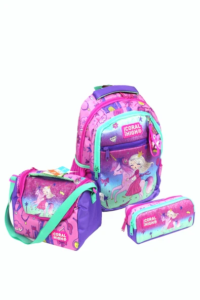 CH 23481 Unicorn Prenses - 3' Lü Okul Çantası Seti - Sırt Ve Beslenme Çantası + Kalemlik