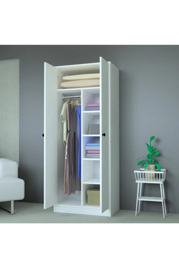 Mobilique Iki Kapaklı Yedi Raflı Zarif Gardırop