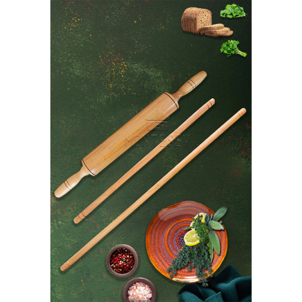 Zümrüt Serisi Dönerli Ahşap Hamur Açma Oklavası Merdanesi Hamur Şekillendirici 3 Lü Set Zmrset9