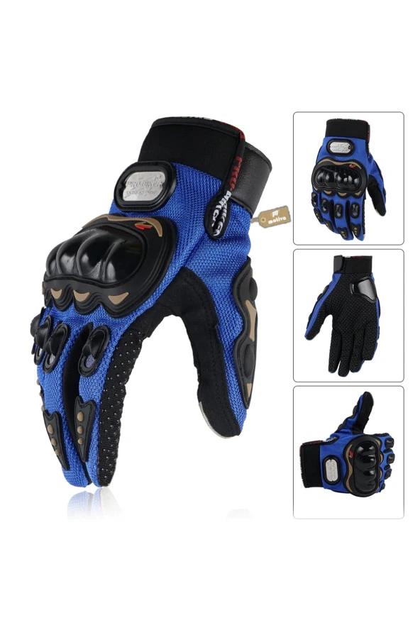 ProBiker 2023 Mavi 3 Mevsim Korumalı Kaymaz Elastik Kumaş Motosiklet Eldiveni