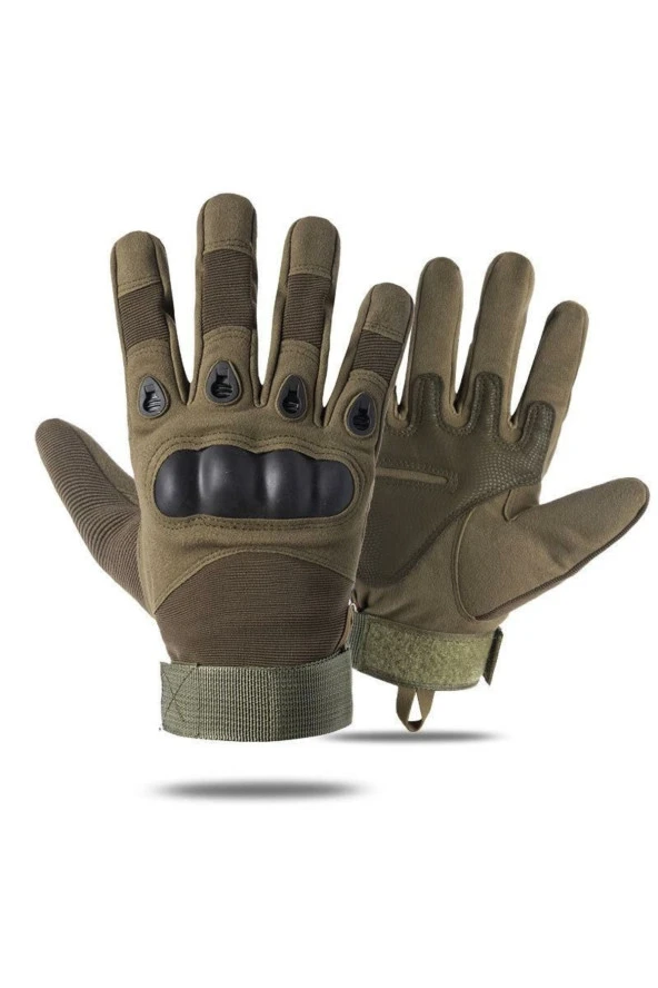 Sport Motosiklet Hard Shell Taktik Eldiven Korumalı Uzun Haki Yeşil