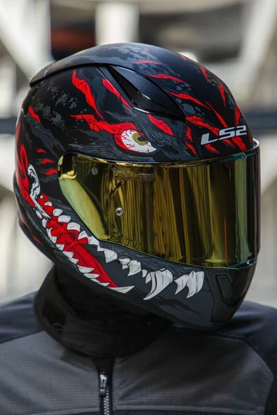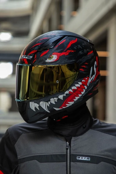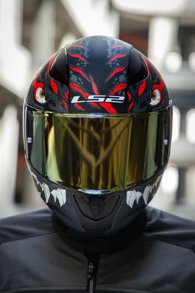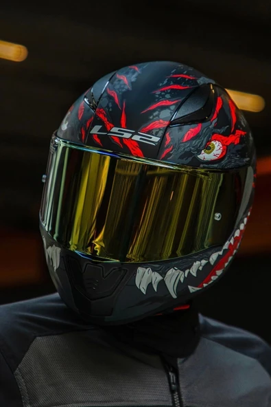 LS2 Rapıd 2 Spox Kırmızı Gri Full Face Motosiklet Kaskı Gold Camlı