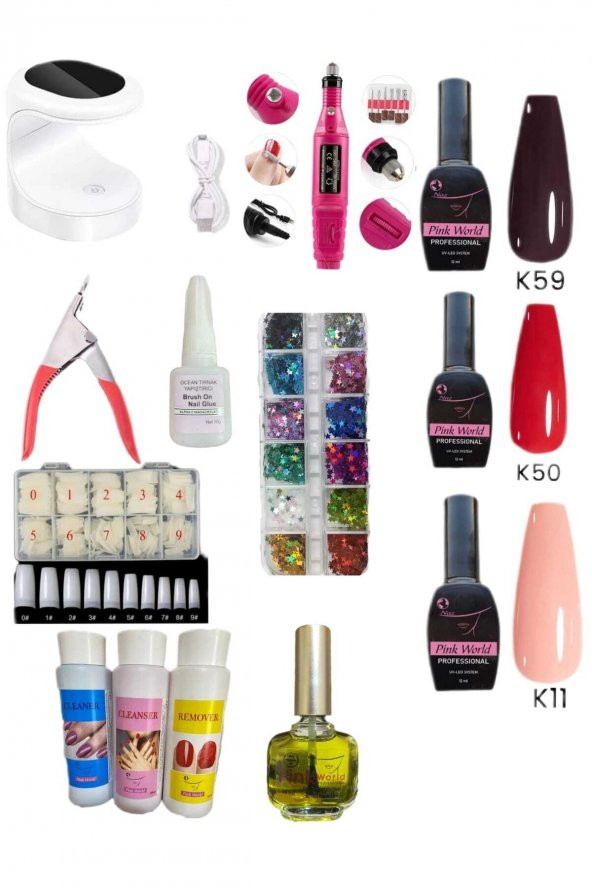 Lady red line Protez Tırnak (3lü Set) Toz Toplama Cihazı Uv Led X7max Freze Makinası