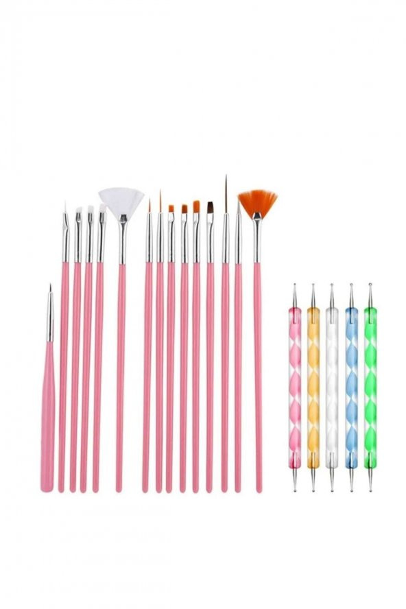 Lady red line Protez Tırnak Kalıcı Oje Süsleme 15li Çok Amaçlı Fırça Set Dots Kalemli 2li Set Pembe
