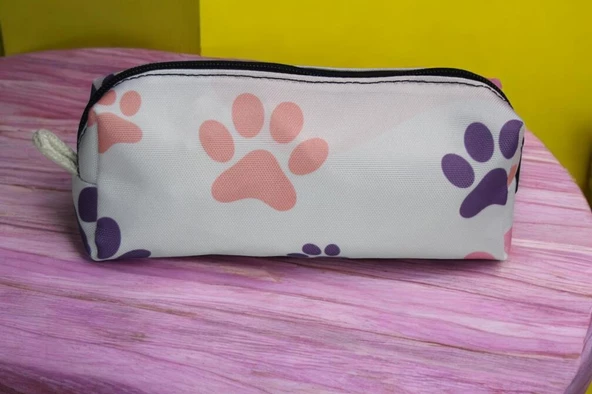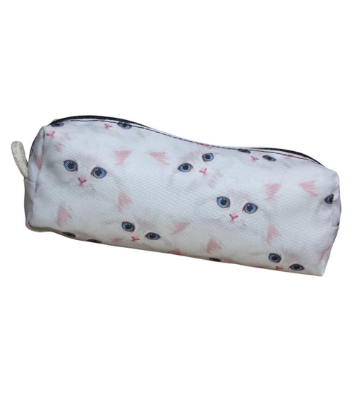 Beyaz Kedi Desenli Tatlı Kalemlik - Okul Kalemliği-Makyaj Çantası