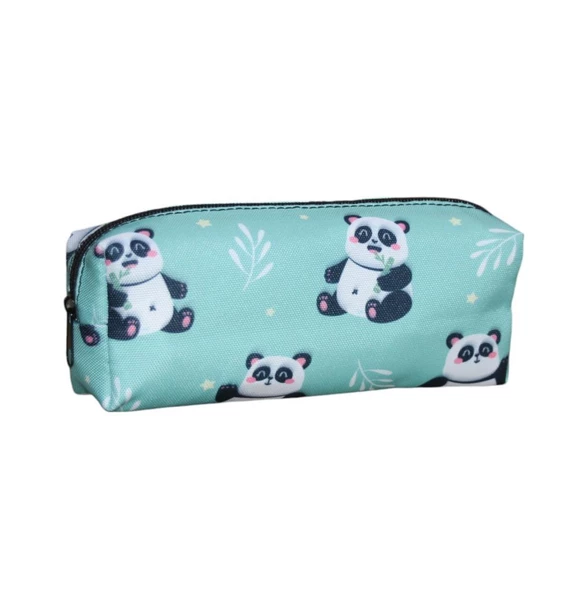 Yeşil Panda Desenli Tatlı Kalemlik - Okul Kalemliği-Makyaj Çantası