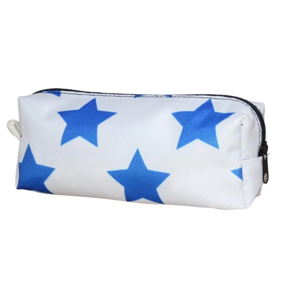 Mavi Yıldız Tatlı Kalemlik - Okul Kalemliği-Makyaj Çantası Mavi Yıldız Beyaz Zemin