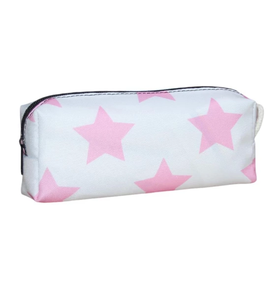 Pembe Yıldız Tatlı Kalemlik - Okul Kalemliği-Makyaj Çantası Pembe Yıldız Beyaz Zemin
