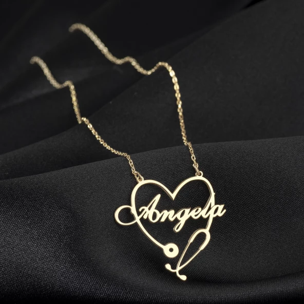 Kadın 925 Ayar Gümüş Doktor Steteskop İsim Kolye Özel Tasarım