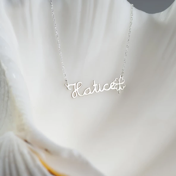 925 Ayar Gümüş Yonca ve İsim Detaylı Kolye Özel Tasarım