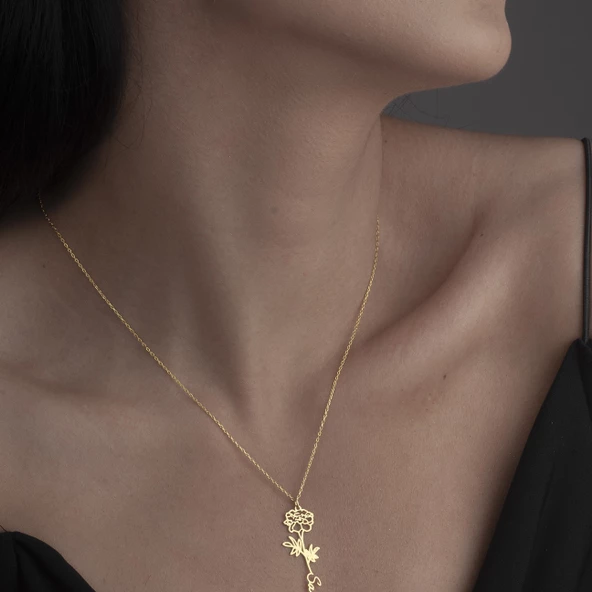 925 Ayar Gümüş Çiçek ve İsim Detaylı Kolye